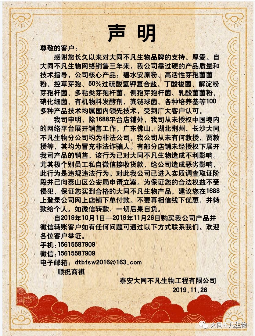 信息来源:泰安大同不凡生物工程有限公司  发布时间:2019-11-27 7:59:18  浏览量:1252 次